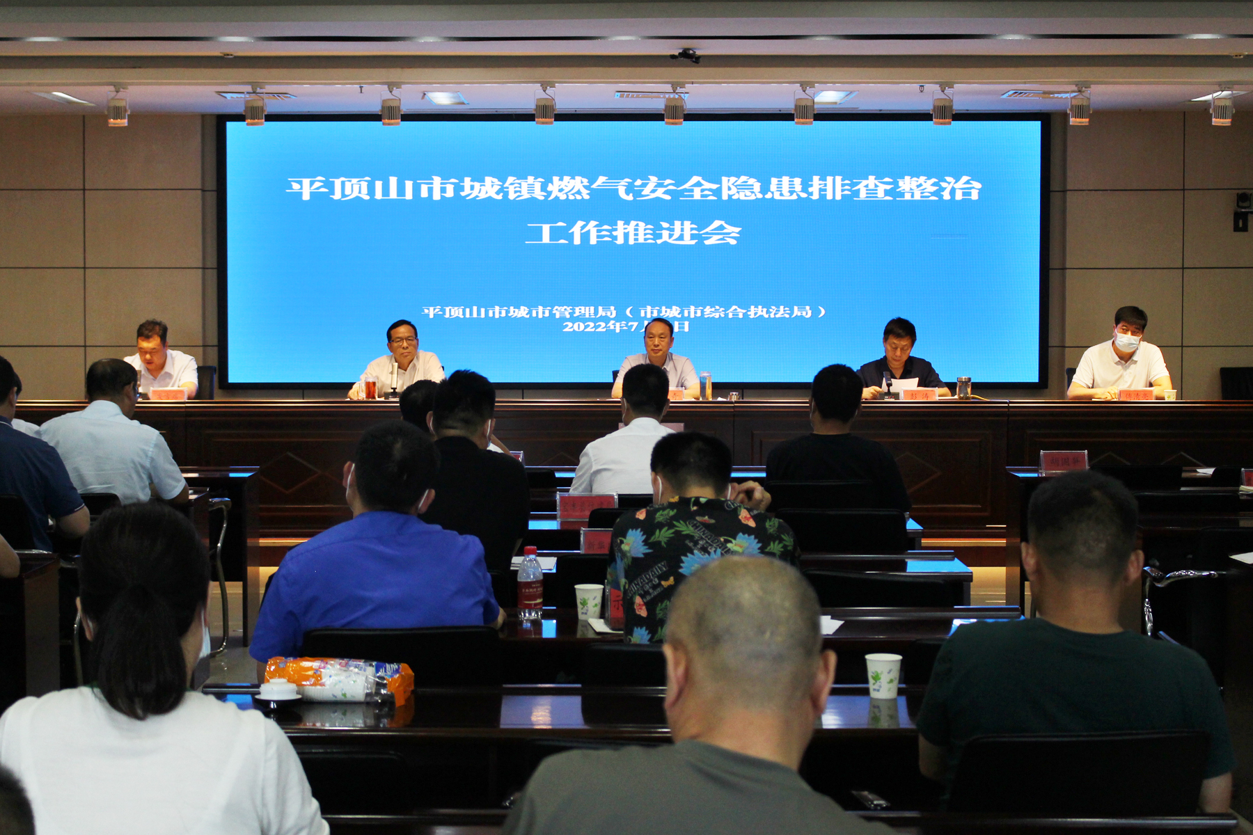 7月7日下午,平顶山市城市管理局组织收听收看全省城镇燃气安全隐患排查整治工作推进视频会议。局党组书记娄文奇、局长彭涛,副局长胡国笋,市燃气专班各成员单位、各级燃气行业主管部门、燃气企业相关负责人参加会议。