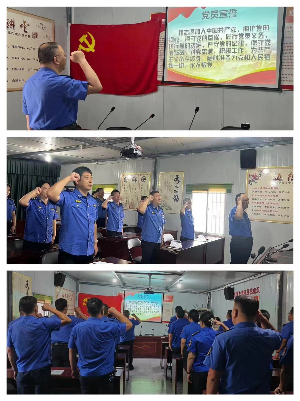 活动开始,由党组成员、副局长姚超同志领誓,全体参会党员面向党旗高举右拳,庄严宣誓:“我志愿加入中国共产党……”铿锵有力的铮铮誓言响彻全场,表达了党员们许党报国、无私奉献、为人民利益奋斗终生的坚定信念。短短的入党誓词,对于在场的每一名党员而言,就是信仰的灯塔、初心的映射、担当的号角。这声音不仅是党员们默默立下对党忠诚的誓言,也是新时代城管人“不忘初心、牢记使命”的决心和信念。
