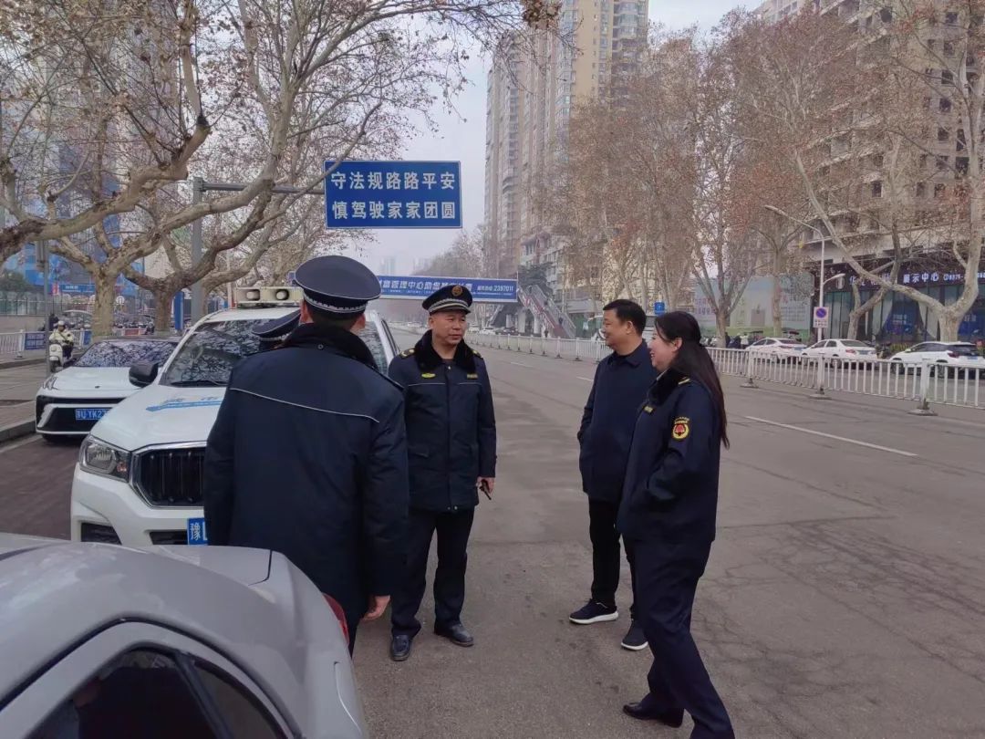 春节期间,人流如织,车水马龙,流动兜售、占道经营、乱停乱放现象极易反弹,城管队员采取“柔性执法”工作模式,从白天到黑夜,对主次干道、重点区域、人流密集路段不间断巡查,对未造成交通拥堵,不影响其他车辆和行人通行的占道经营、轻微违停等行为口头警告、教育劝离,劝导兜售春联的摊贩到局设置的17个指定地点摆放,劝阻、制止在日常巡查、执法检查中发现的违规经营烟花爆竹的行为,努力保障良好的城市秩序。